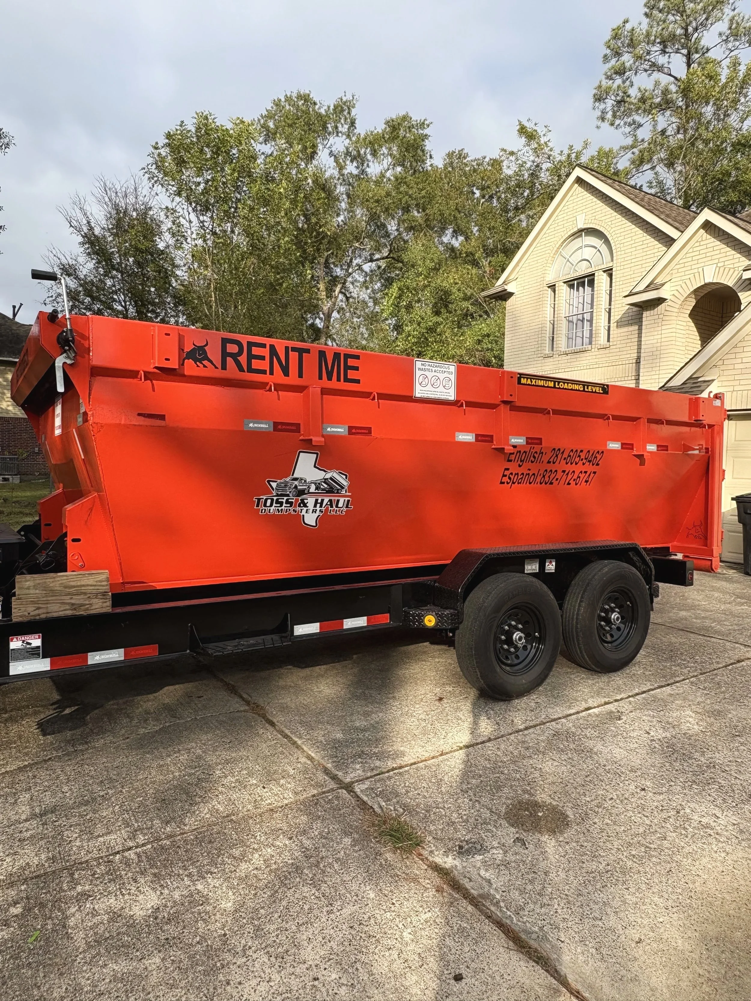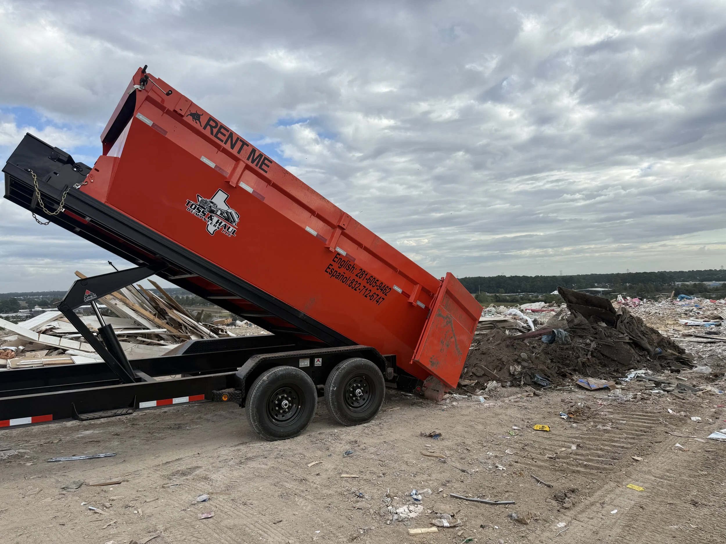 We have 15 yard dumpsters for rent. You provide the location and time the dumpster is needed. We will provide delivery with in 24 hours.